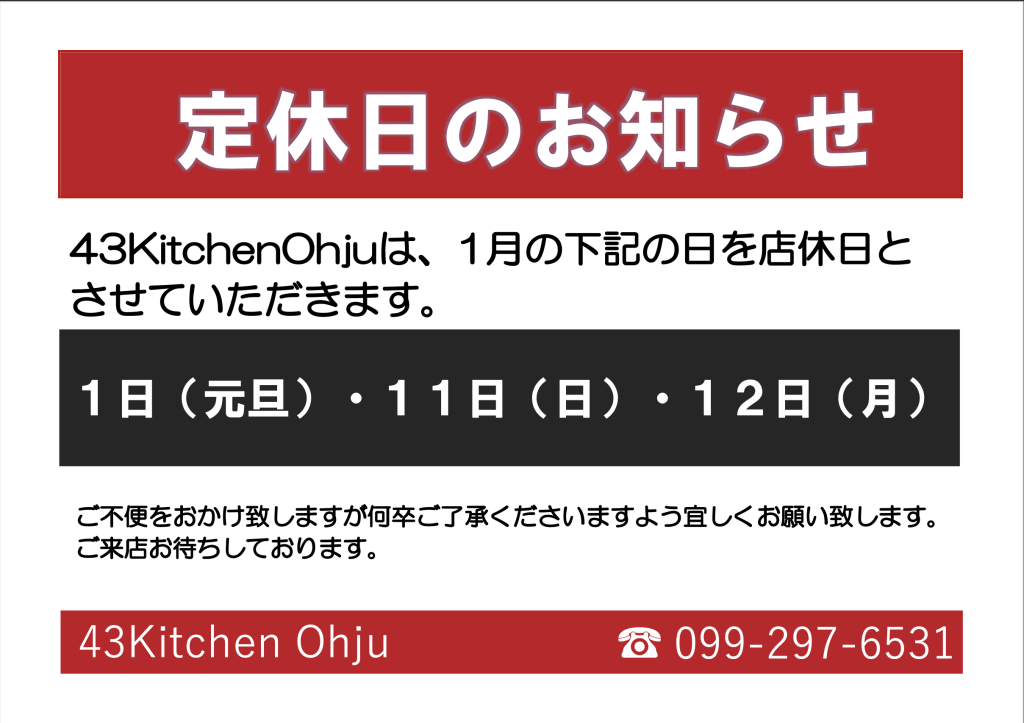 1月は 1日(元旦)・11日(日)・12日(月)を店休日とさせていただきます。